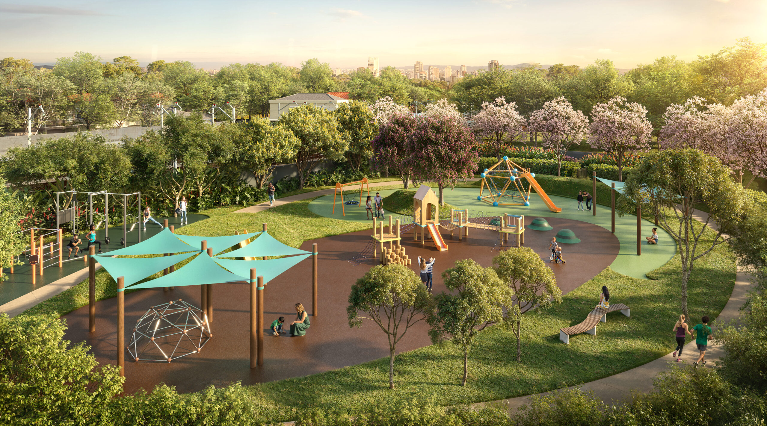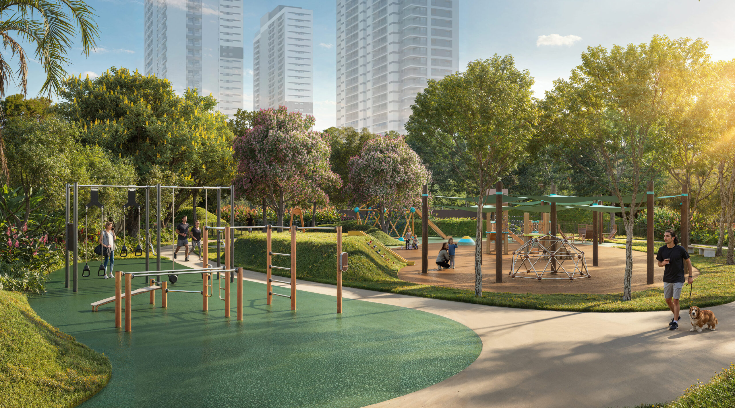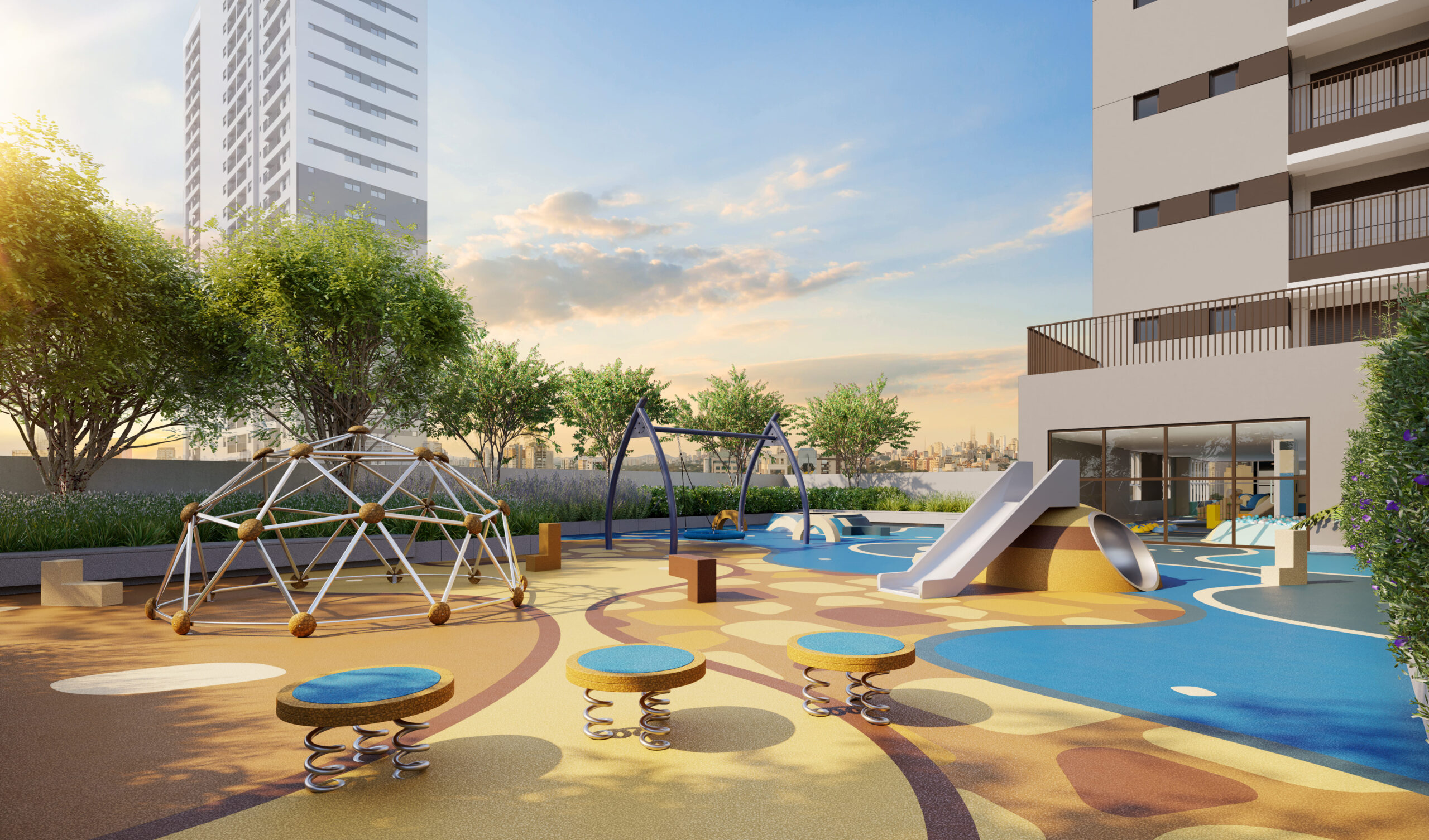 Playground — área externa para atividades ao ar livre, integrada ao paisagismo do condomínio.