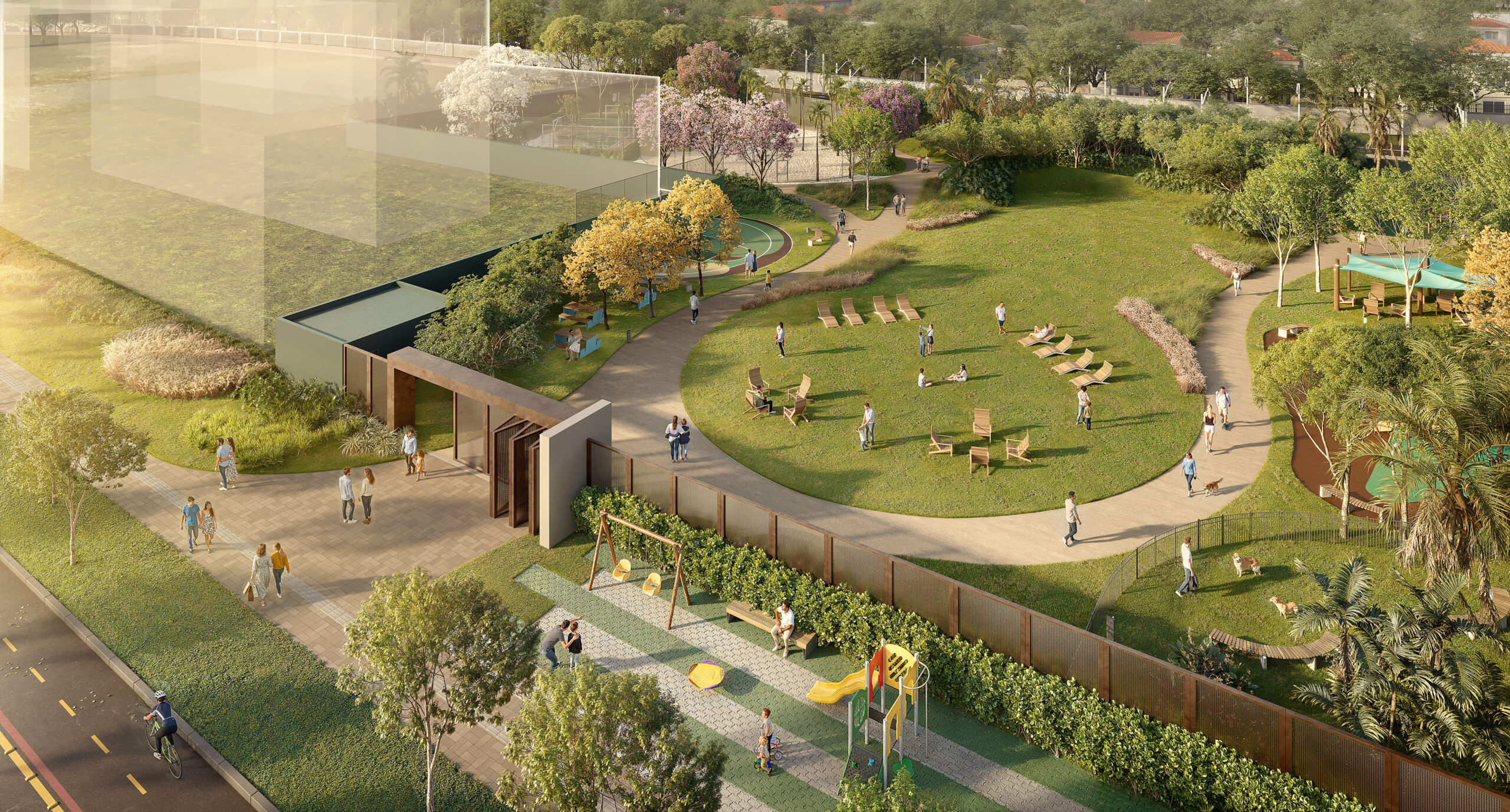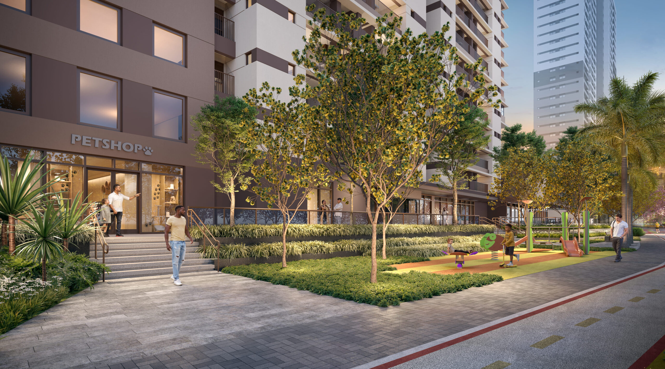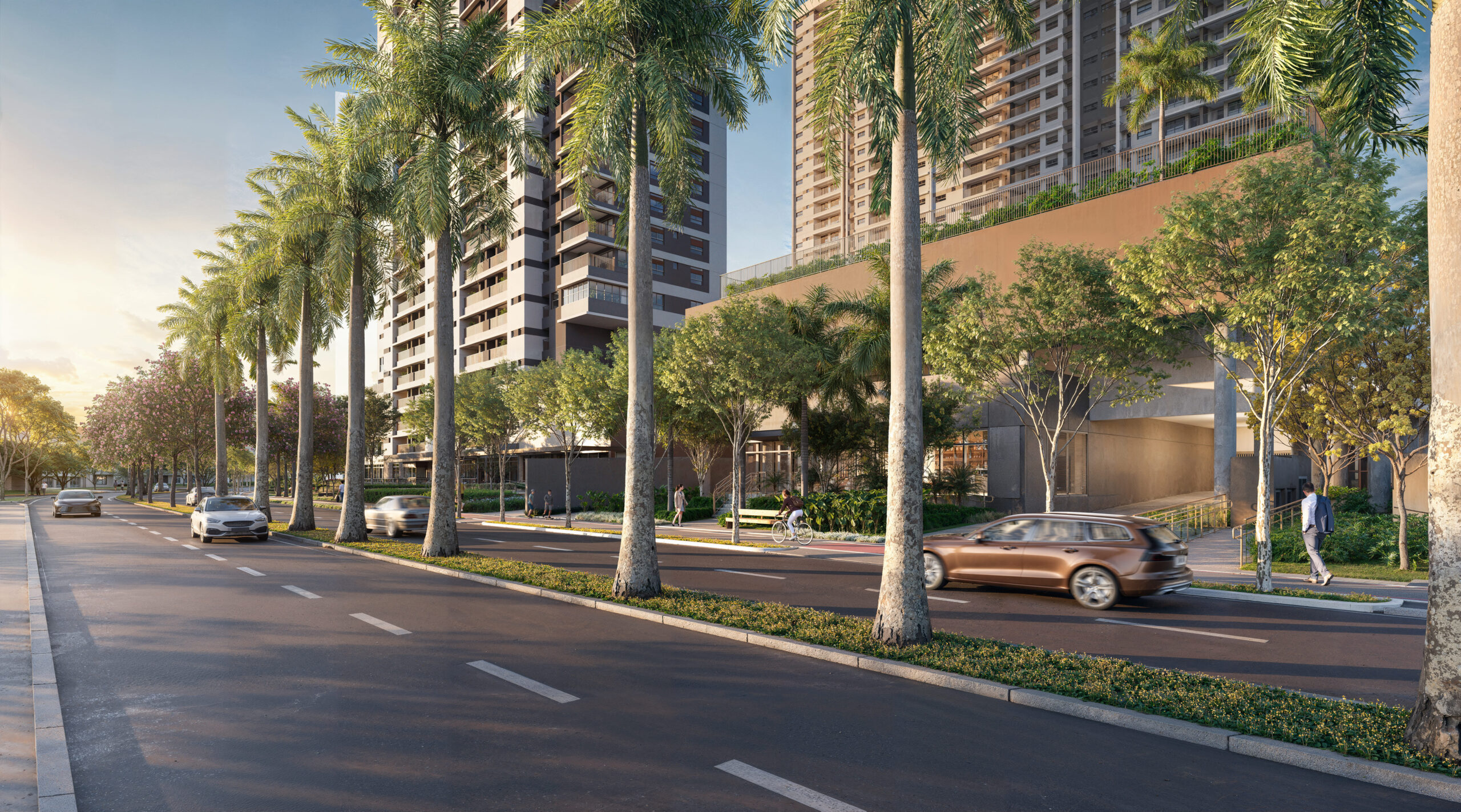Diferente de lançamentos isolados, o Nova Vivere faz parte de um conjunto urbano planejado desde o início. O Caminhos da Lapa abriga a primeira Rua-Jardim de São Paulo, um eixo com áreas verdes contínuas, circulação qualificada e prioridade ao pedestre.