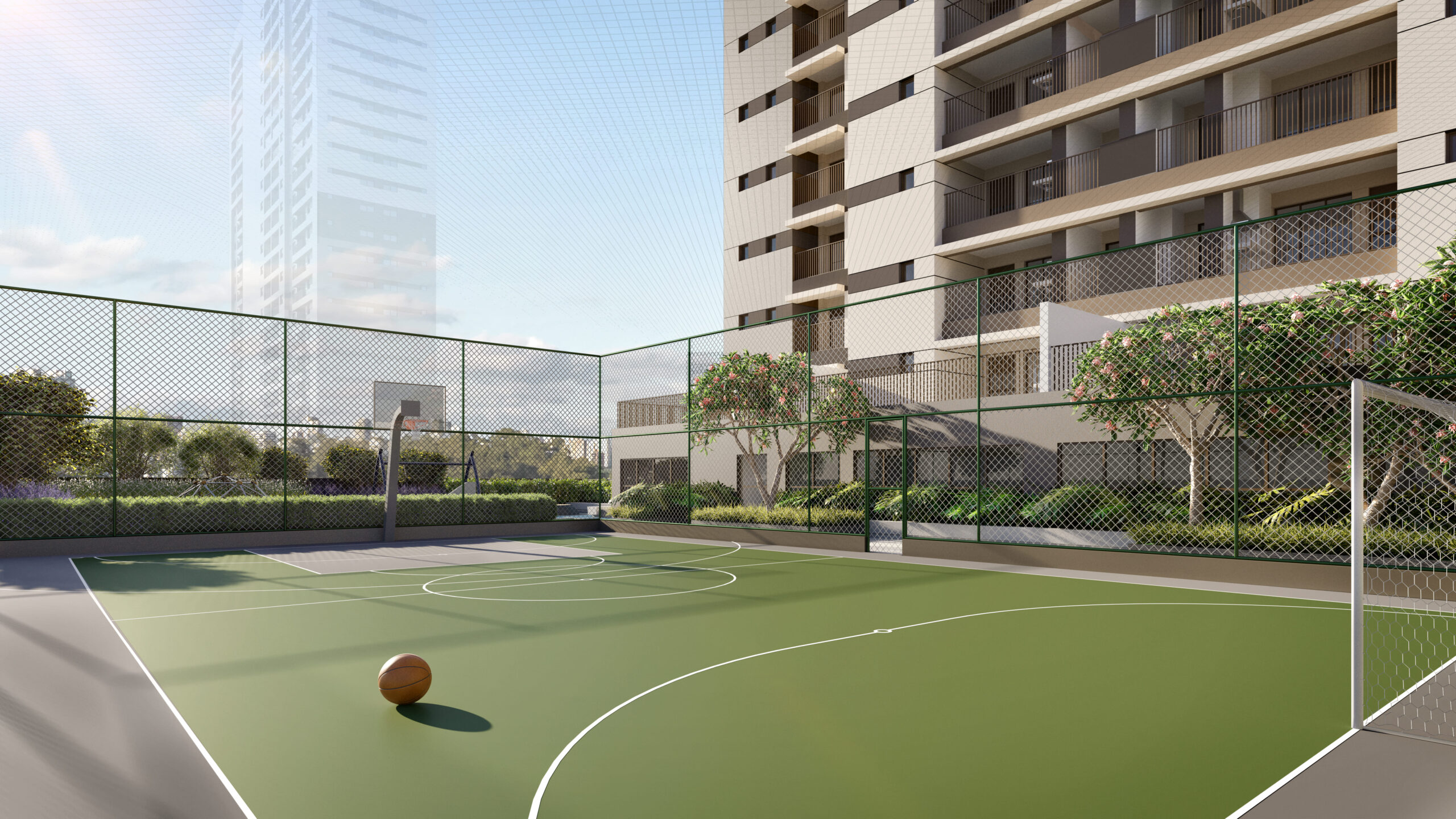 Quadra recreativa — espaço para práticas esportivas leves e atividades coletivas.