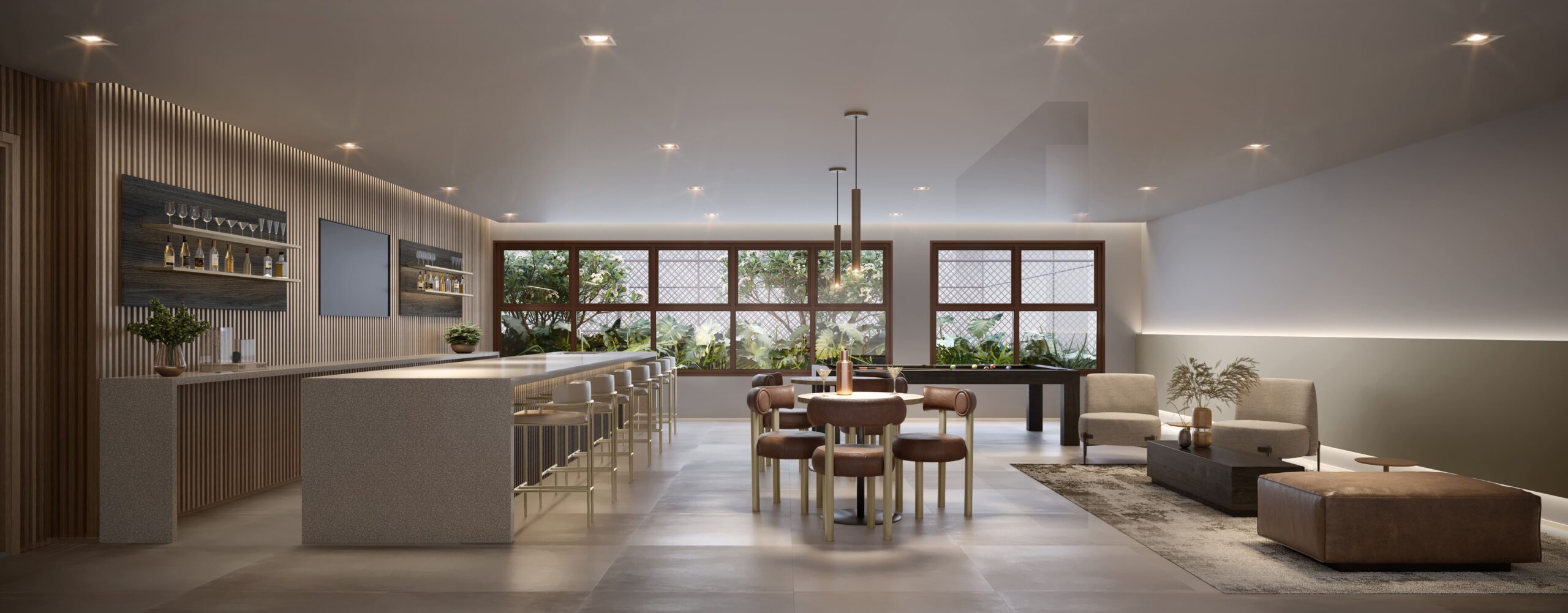 O lazer do Nova Vivere foi planejado para atender rotinas diferentes, sem excesso nem subdimensionamento. Os ambientes são organizados para uso frequente, com áreas voltadas à saúde, convivência social e família.