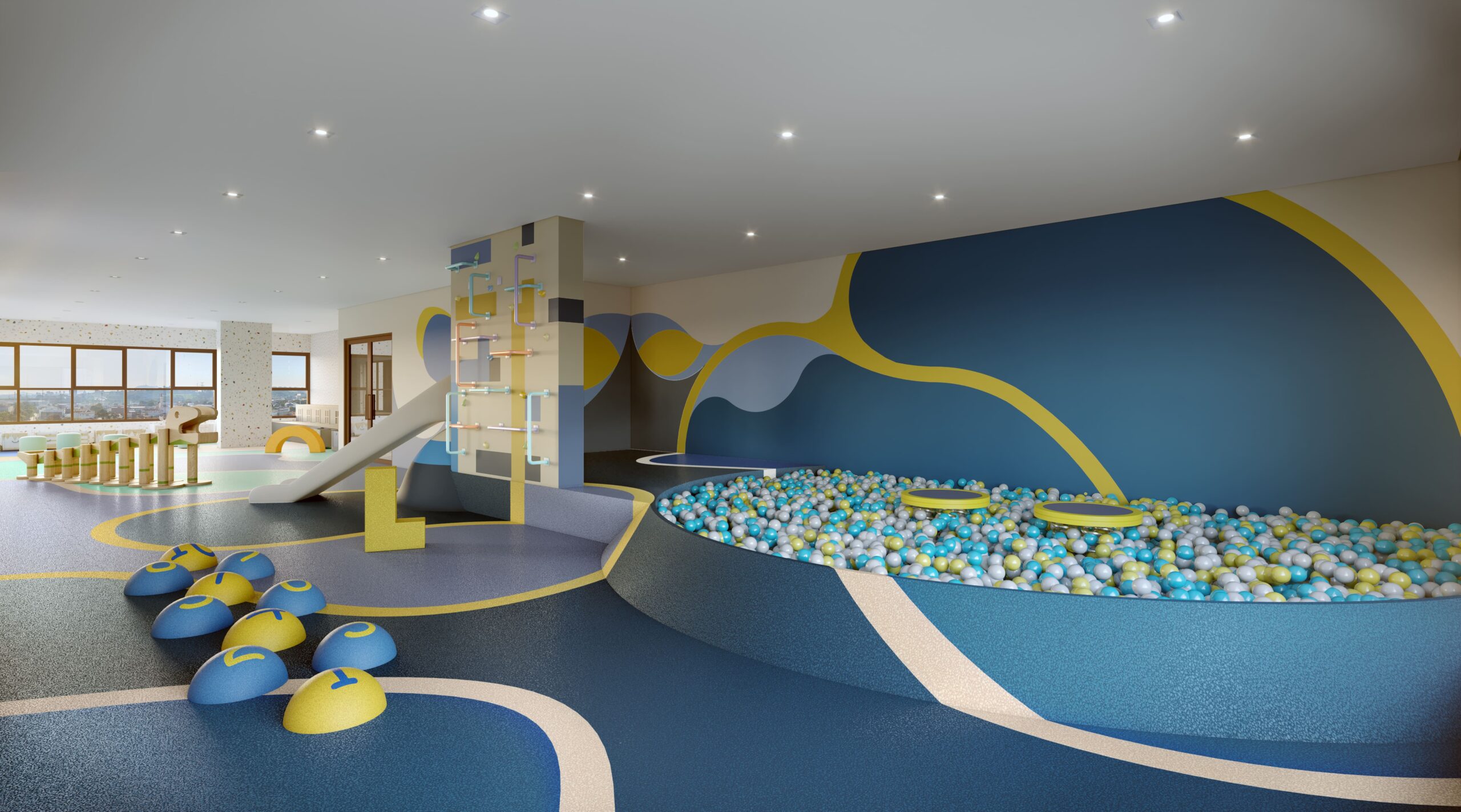 Brinquedoteca — ambiente fechado e seguro para crianças pequenas, próximo às áreas de convivência.