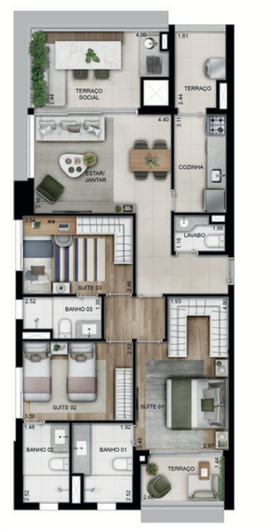 As plantas do Nova Vivere priorizam conforto, circulação funcional e suítes, atendendo diferentes perfis de uso: